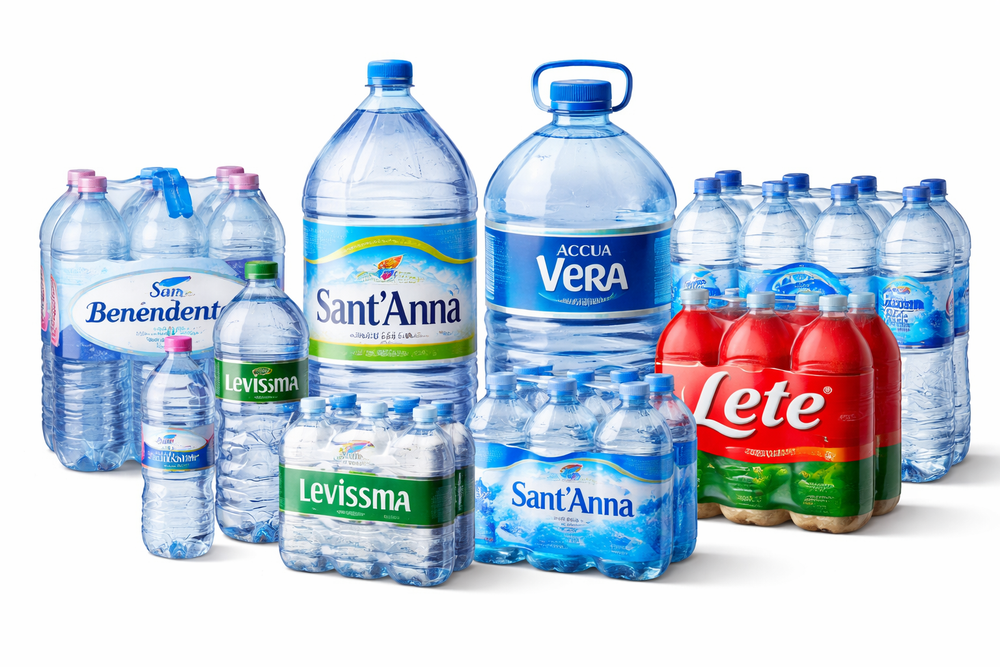 Ampia selezione di acque in bottiglia di diversi marchi e formati, pensata per soddisfare tutte le esigenze di idratazione.